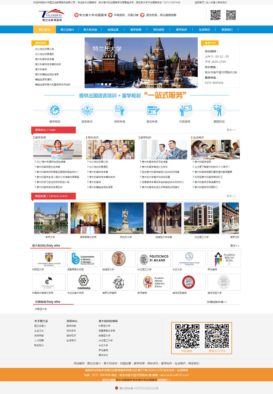 新鄉(xiāng)市圖蘭朵教育服務有限公司是一家專注于河南地區(qū)意大利出國留學辦理機構,營銷中心坐落于新鄉(xiāng)市南干道38號院西三樓。公司應“圖蘭朵計劃”響應,全程跟蹤服務每一位學生,圓你出國留學夢!